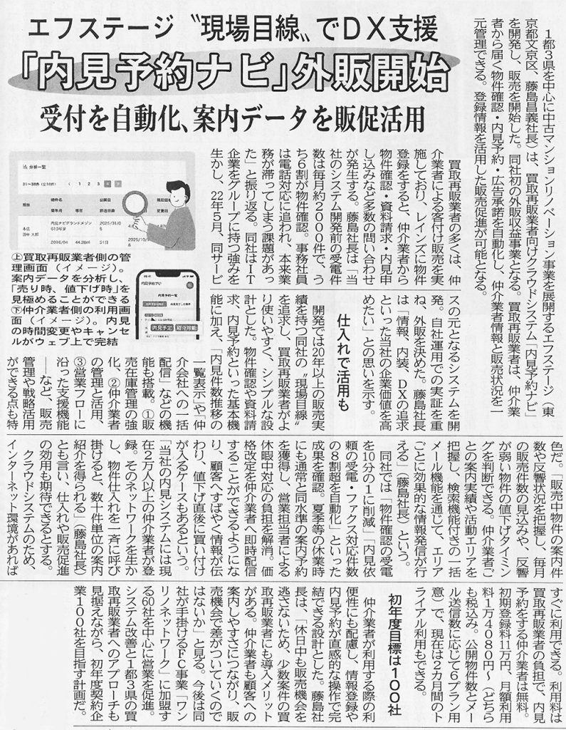 エフステージ〝現場目線〟でDX支援 「内見予約ナビ」外販開始
